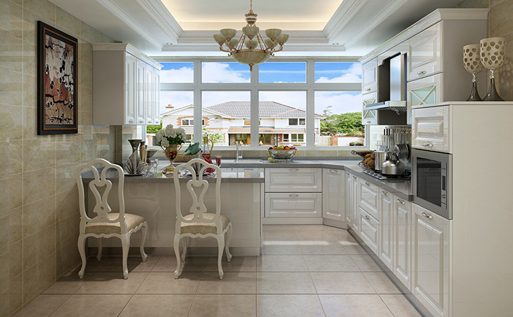 歐式風(fēng)潮素來(lái)彰顯尊貴氣派,東歐古典廚房櫥柜,采用白色為主色系,巧妙運(yùn)用做舊工藝,以體現(xiàn)出更加獨(dú)特的典雅。柜體高低錯(cuò)落,適宜高度更符合人體工程學(xué),使用更方便。