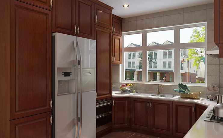 新中式古典風(fēng)實(shí)木櫥柜定制,采用大落地式設(shè)計(jì)風(fēng)格,通過厚重實(shí)木、深色木紋、大理石的創(chuàng)意混搭,營(yíng)造時(shí)尚之感,體現(xiàn)了新中式的沉穩(wěn)大氣和濃重的文化底蘊(yùn)。