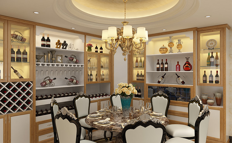 歐式奢華,給人以尊崇享受,整體餐邊柜,木紋肌理緩和了多余的距離感,真實自然的奢享之感撲面而來;整體空間搭配到位,保持格調(diào)統(tǒng)一,疏密有致,調(diào)節(jié)空間節(jié)奏感,使餐廳更加和諧有序。