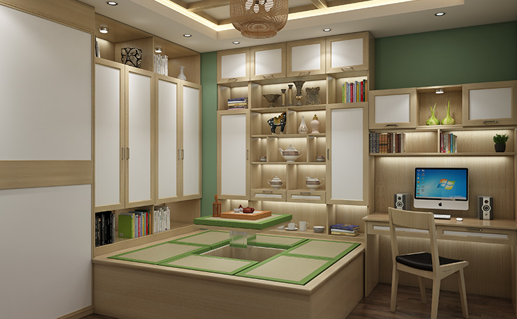 日式簡約風(fēng)格制作的升降式榻榻米,采用更加純粹的設(shè)計風(fēng)格,如大面積的原木花紋,只添加少許跳脫顏色,增設(shè)清新之感,帶來更獨特的榻榻米設(shè)計。